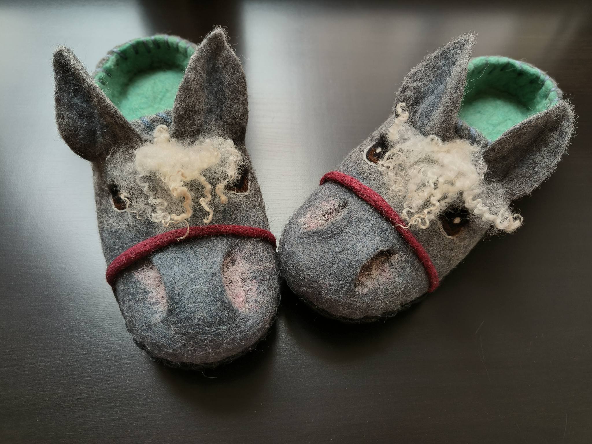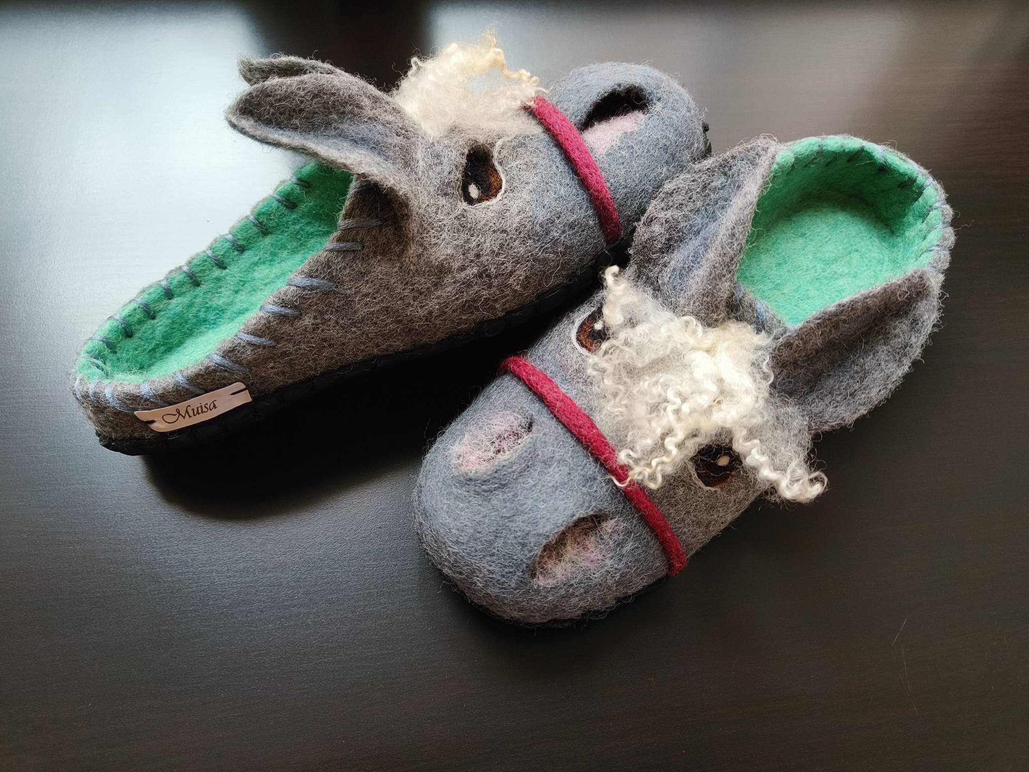 Kauniit 100 % villasta Virossa käsityönä huovutetut tossut.