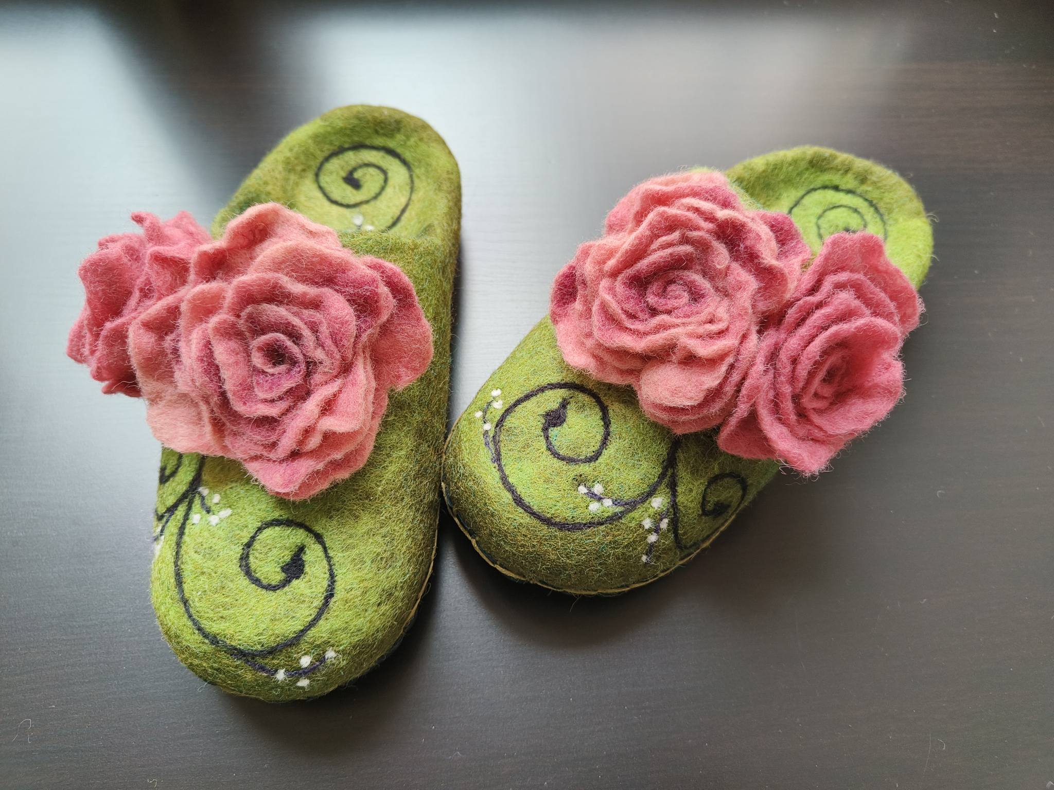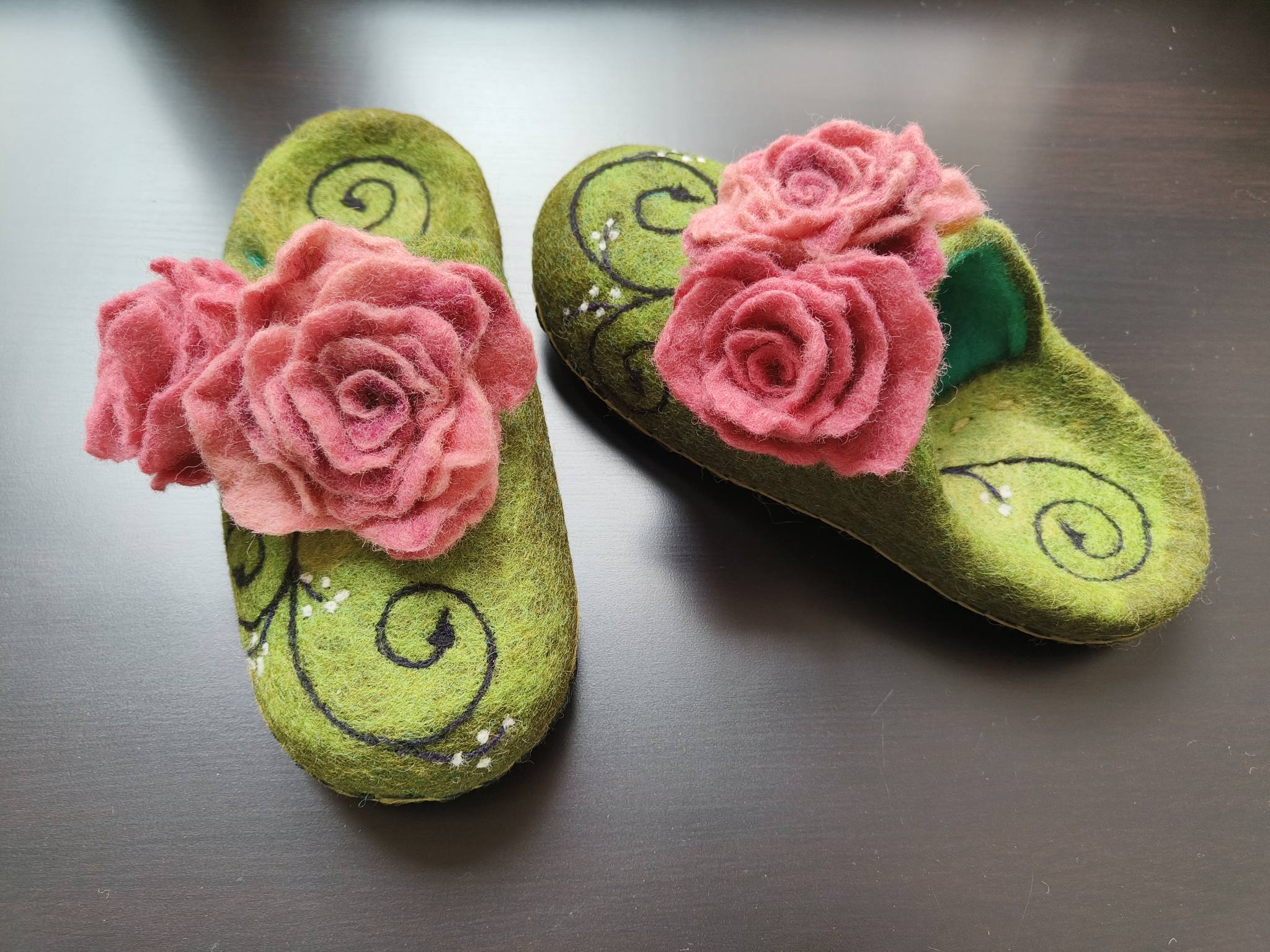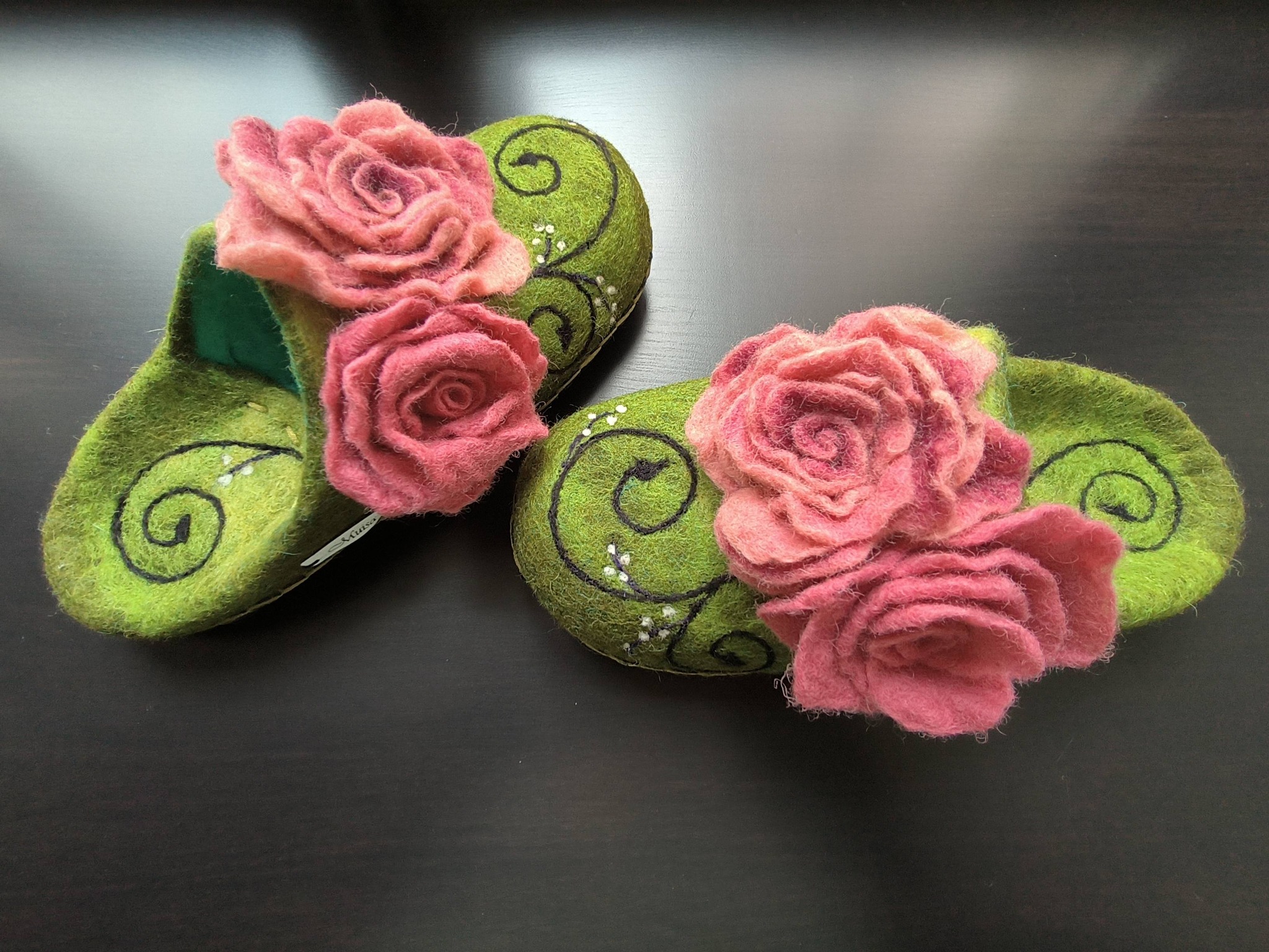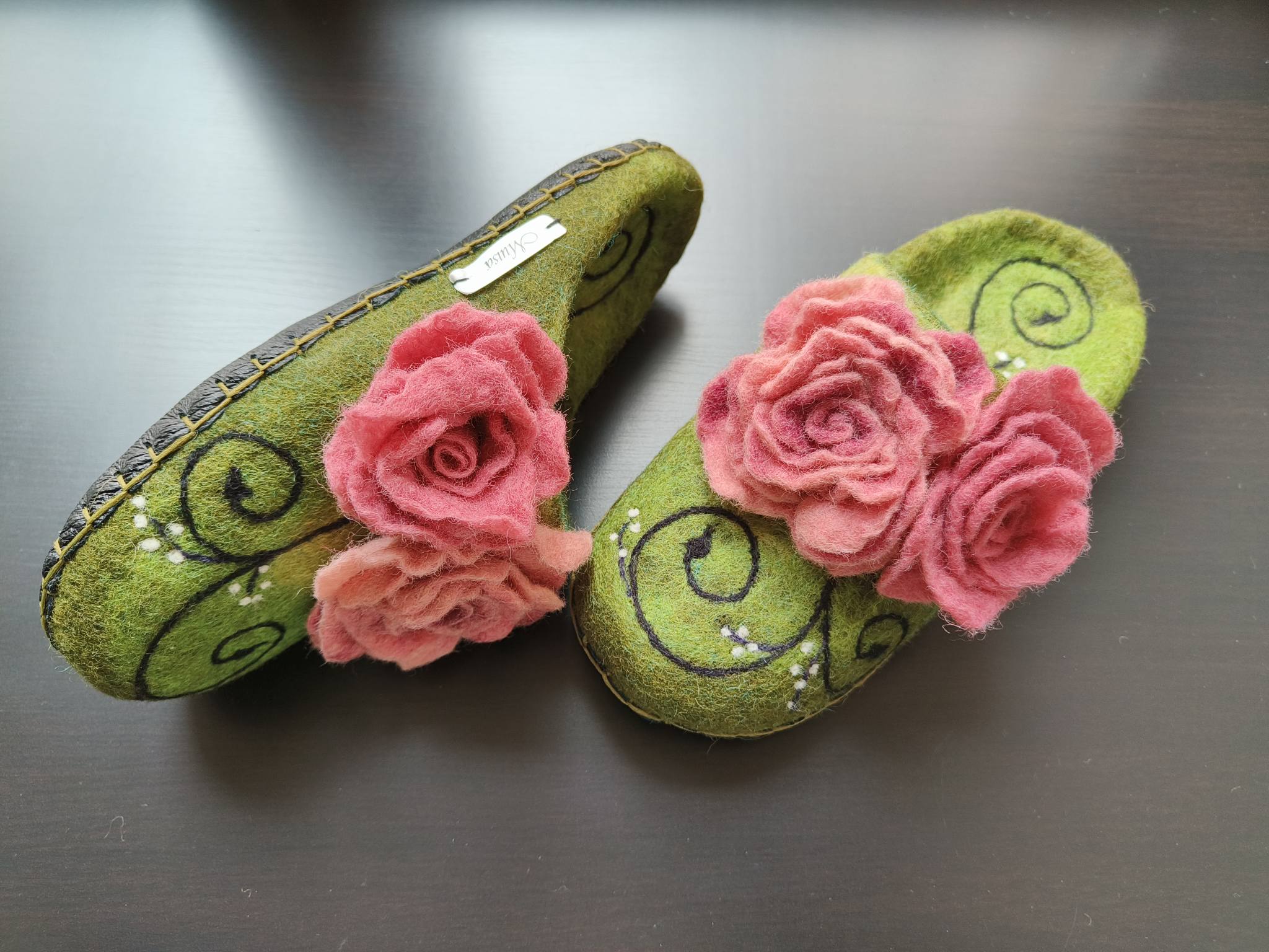 Kauniit 100 % villasta Virossa käsityönä huovutetut tossut.