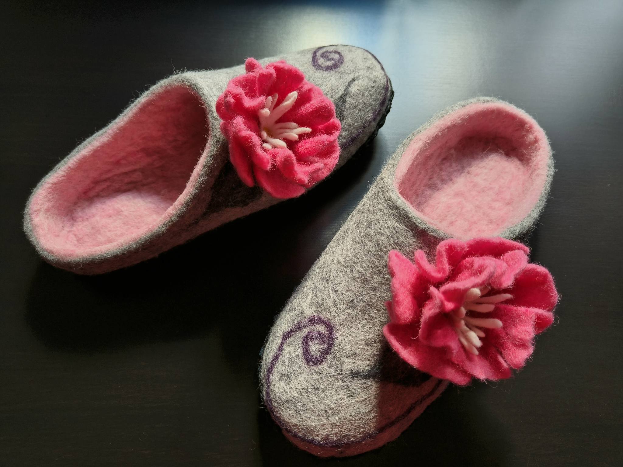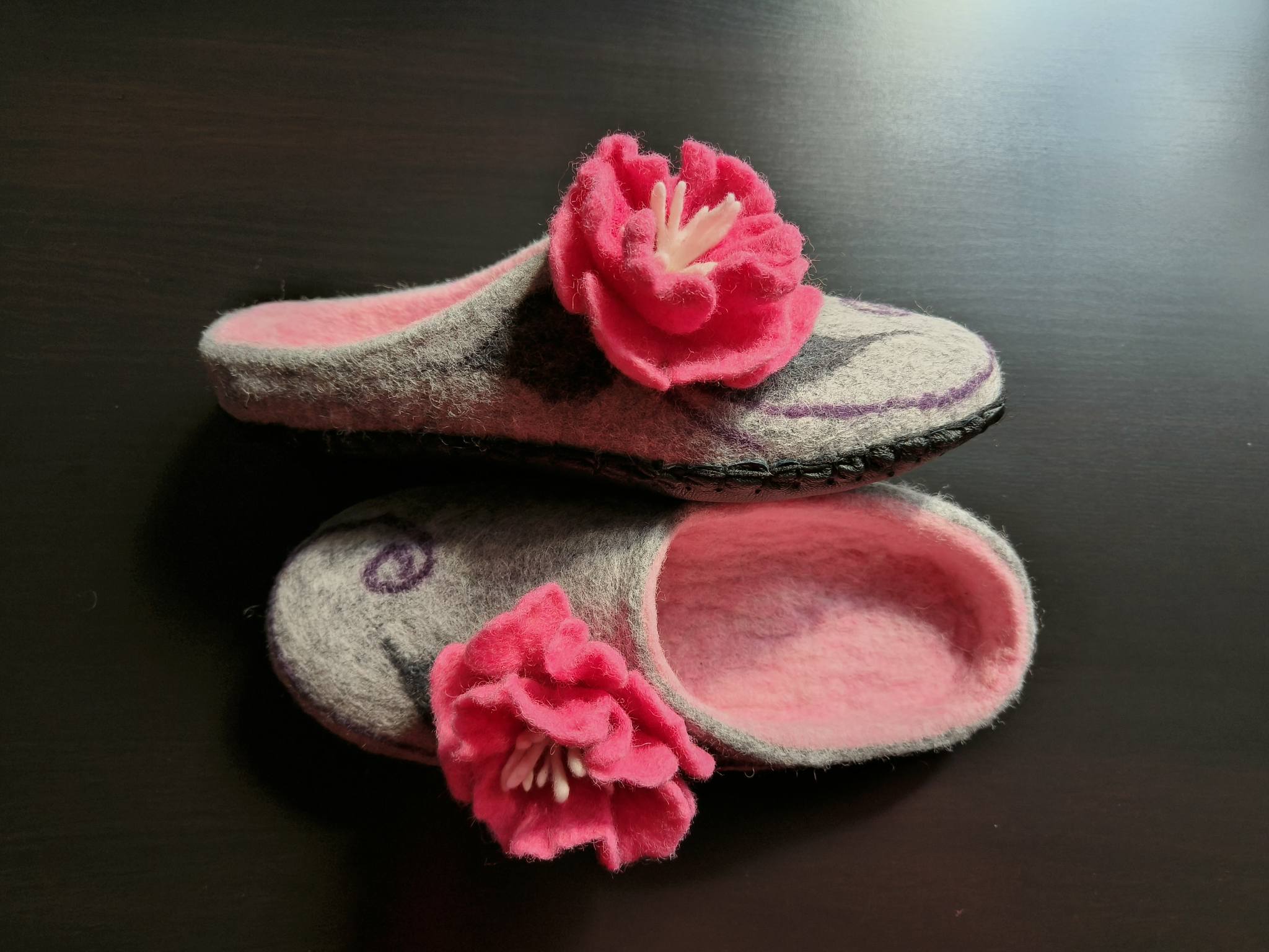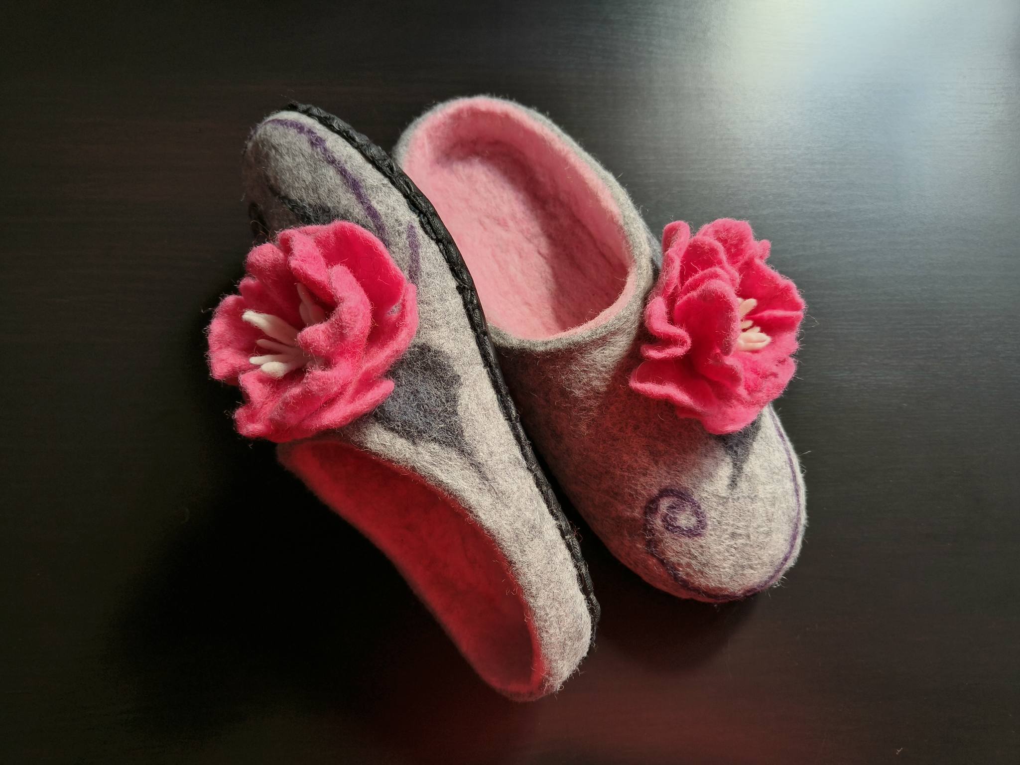 Kauniit 100 % villasta Virossa käsityönä huovutetut tossut.