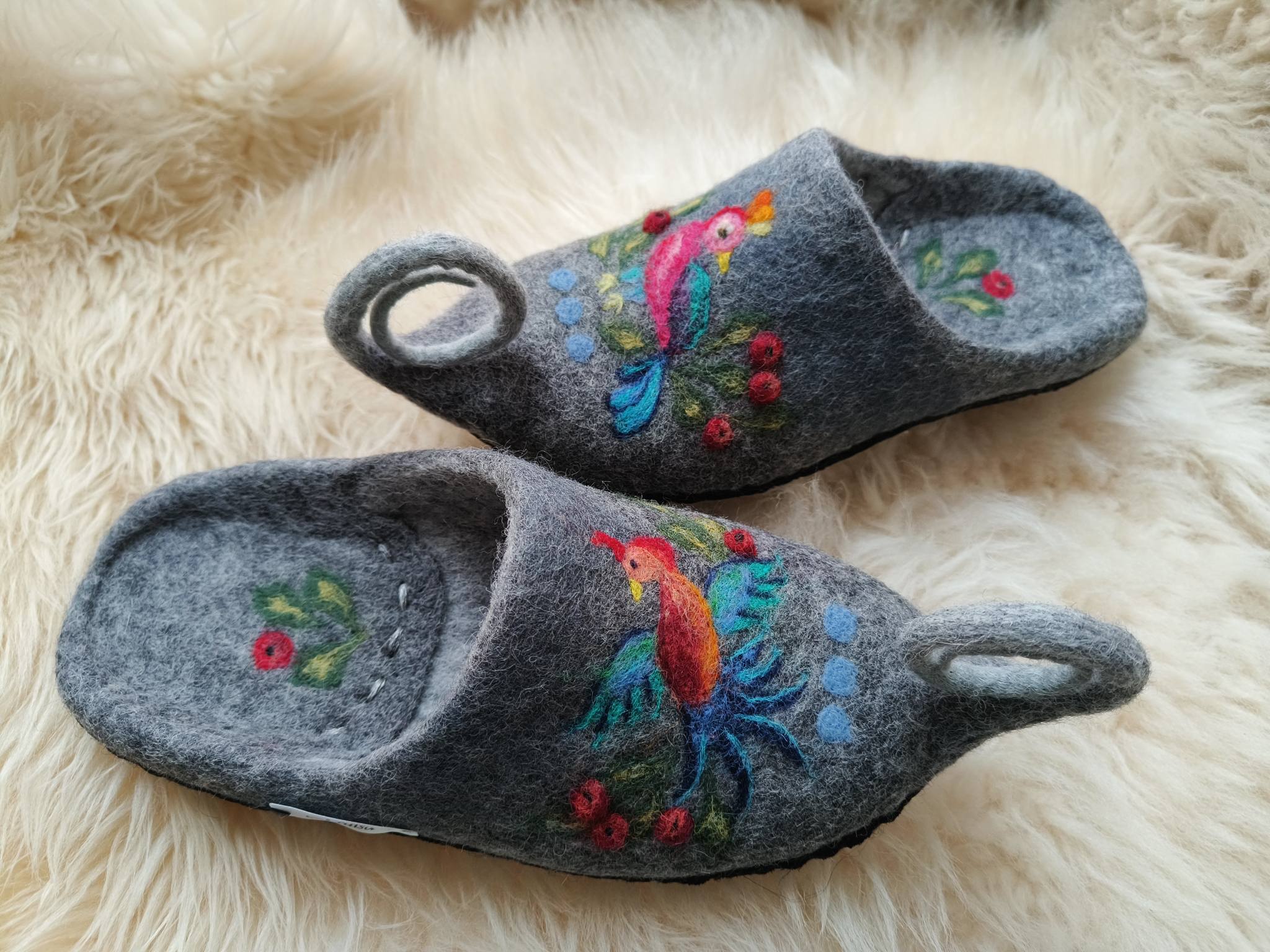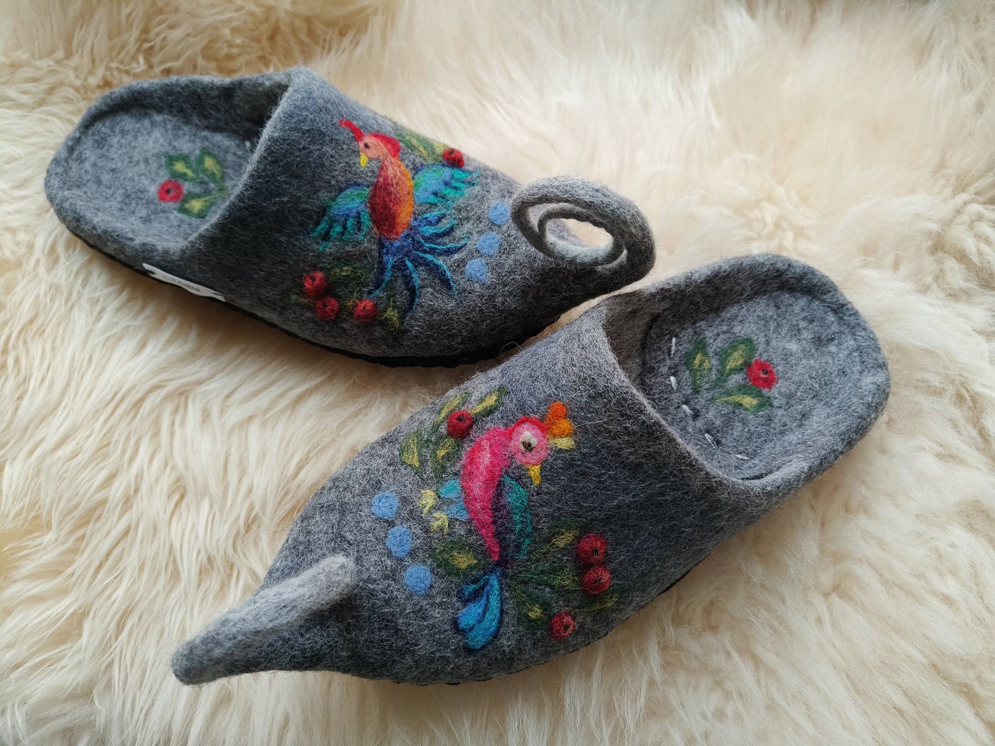 Kauniit 100 % villasta Virossa käsityönä huovutetut tossut.