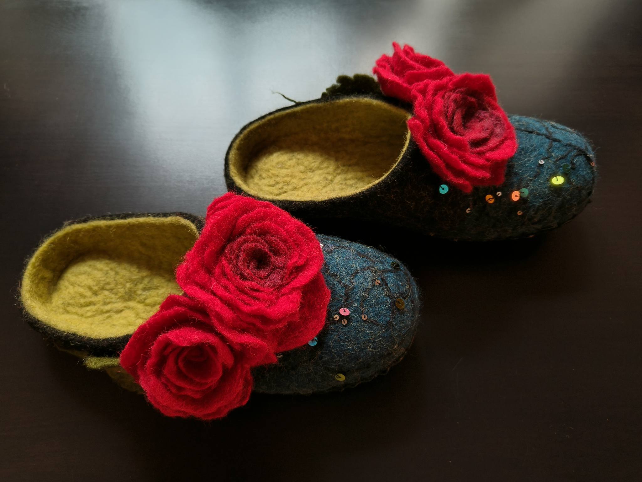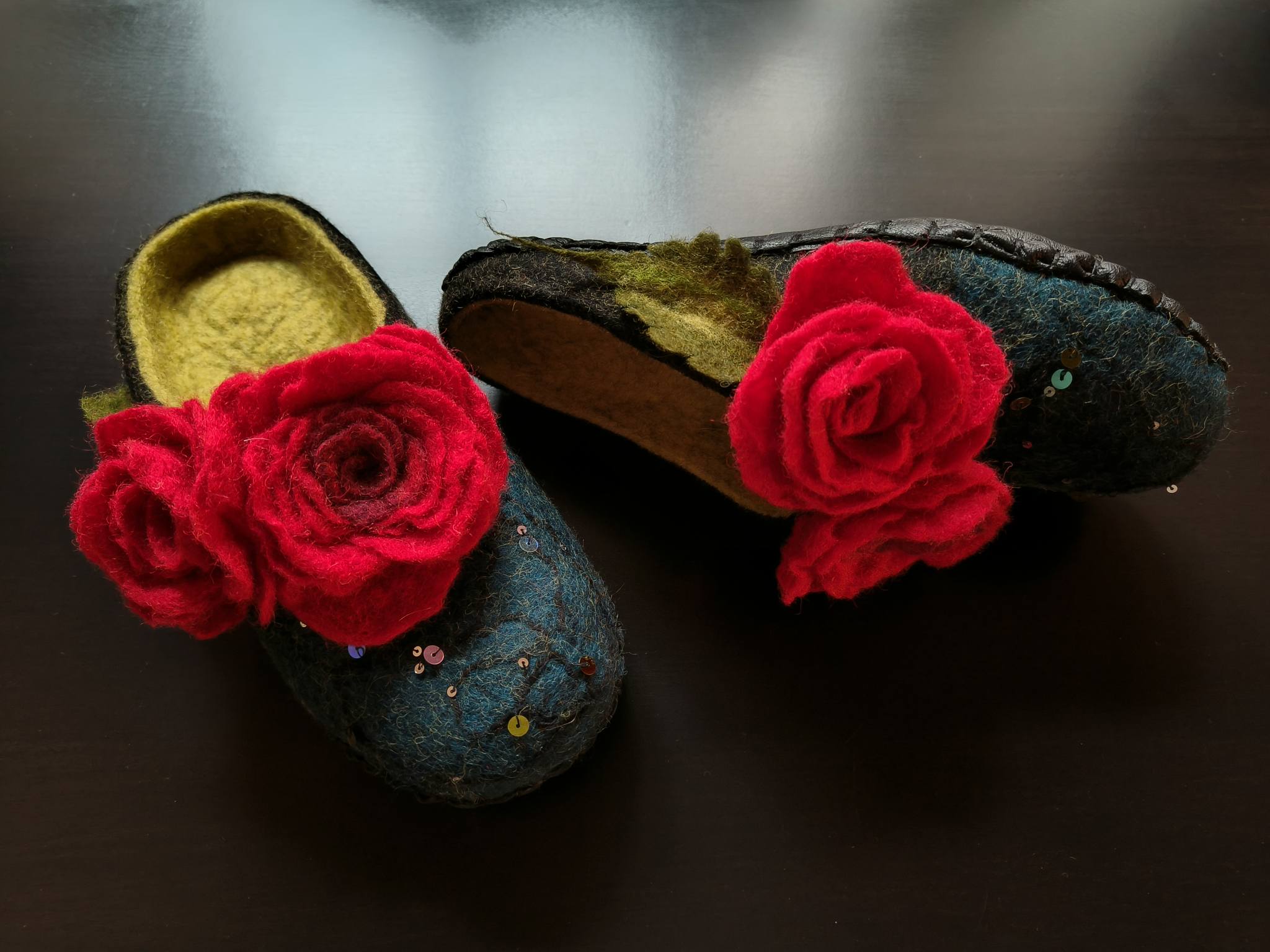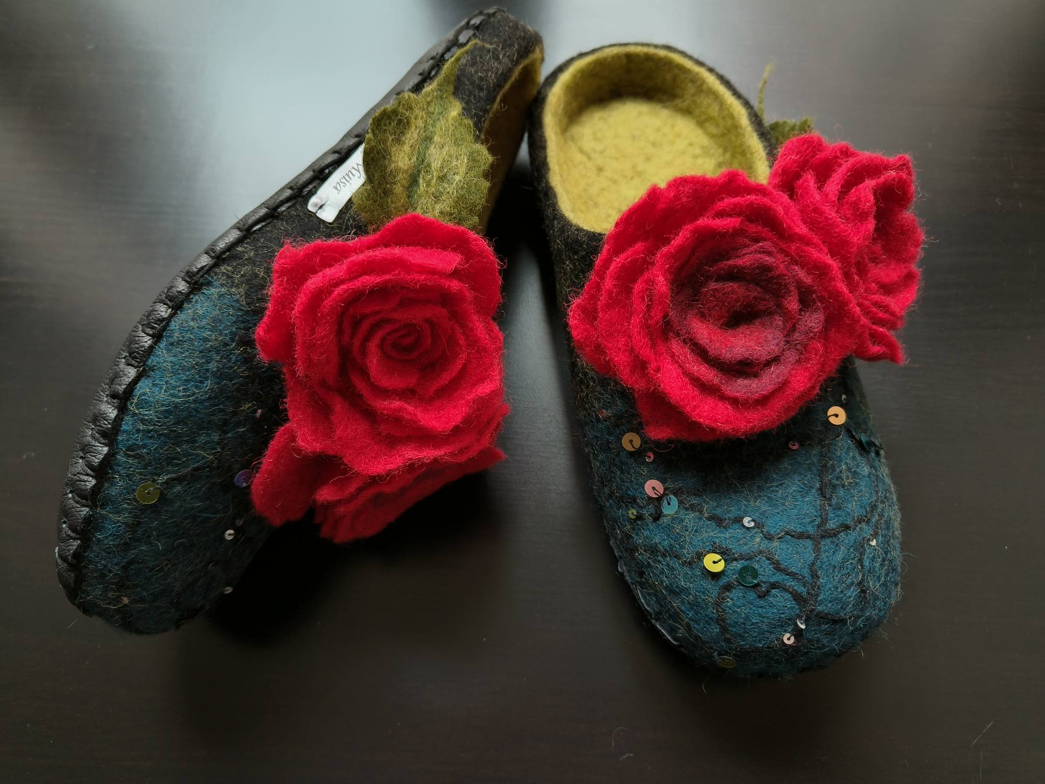Kauniit 100 % villasta Virossa käsityönä huovutetut tossut.