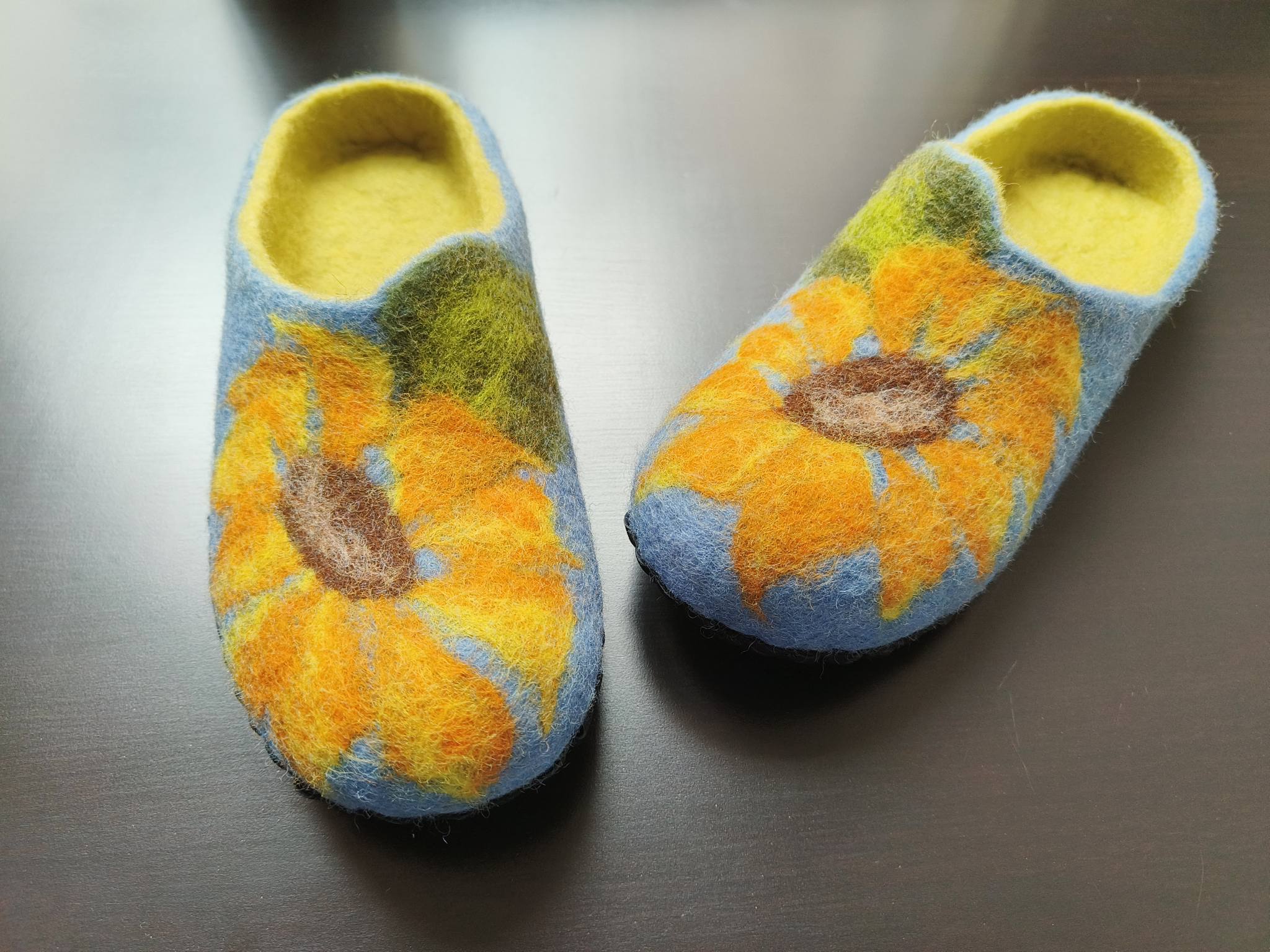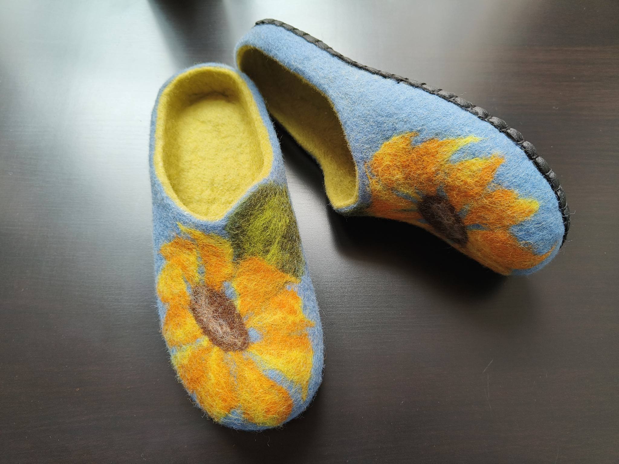 Kauniit 100 % villasta Virossa käsityönä huovutetut tossut.