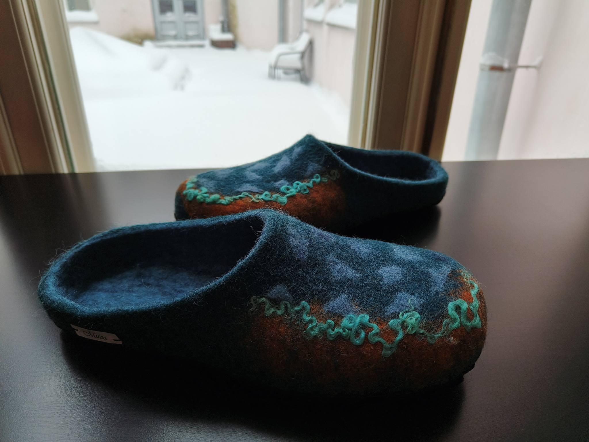 Jokainen pari on uniikki. Juuri kyseistä mallia ja kokoa on varastossa vain kuvassa esitetyt yksilöt. Valmistamme tossuja myös tilauksesta.