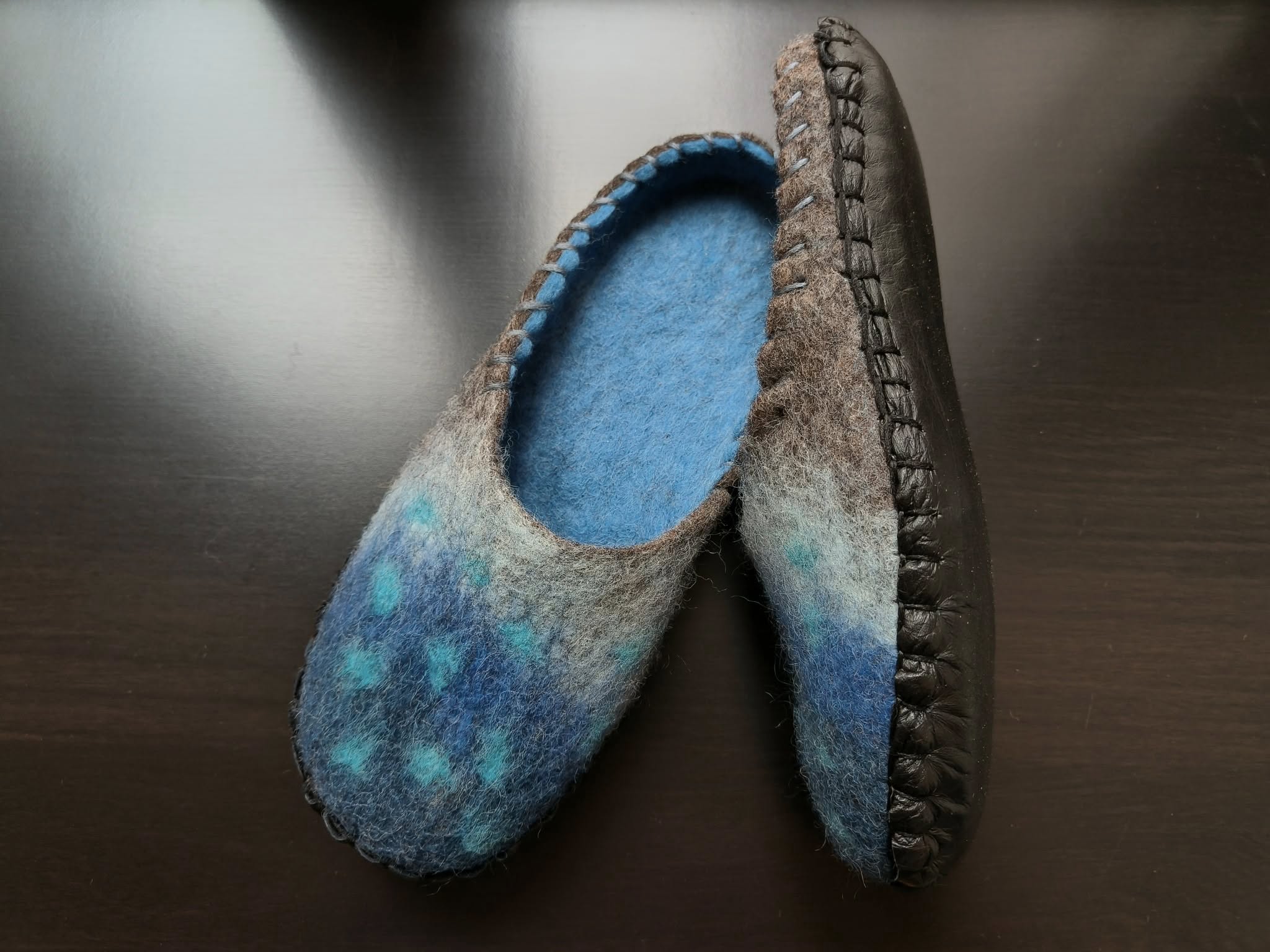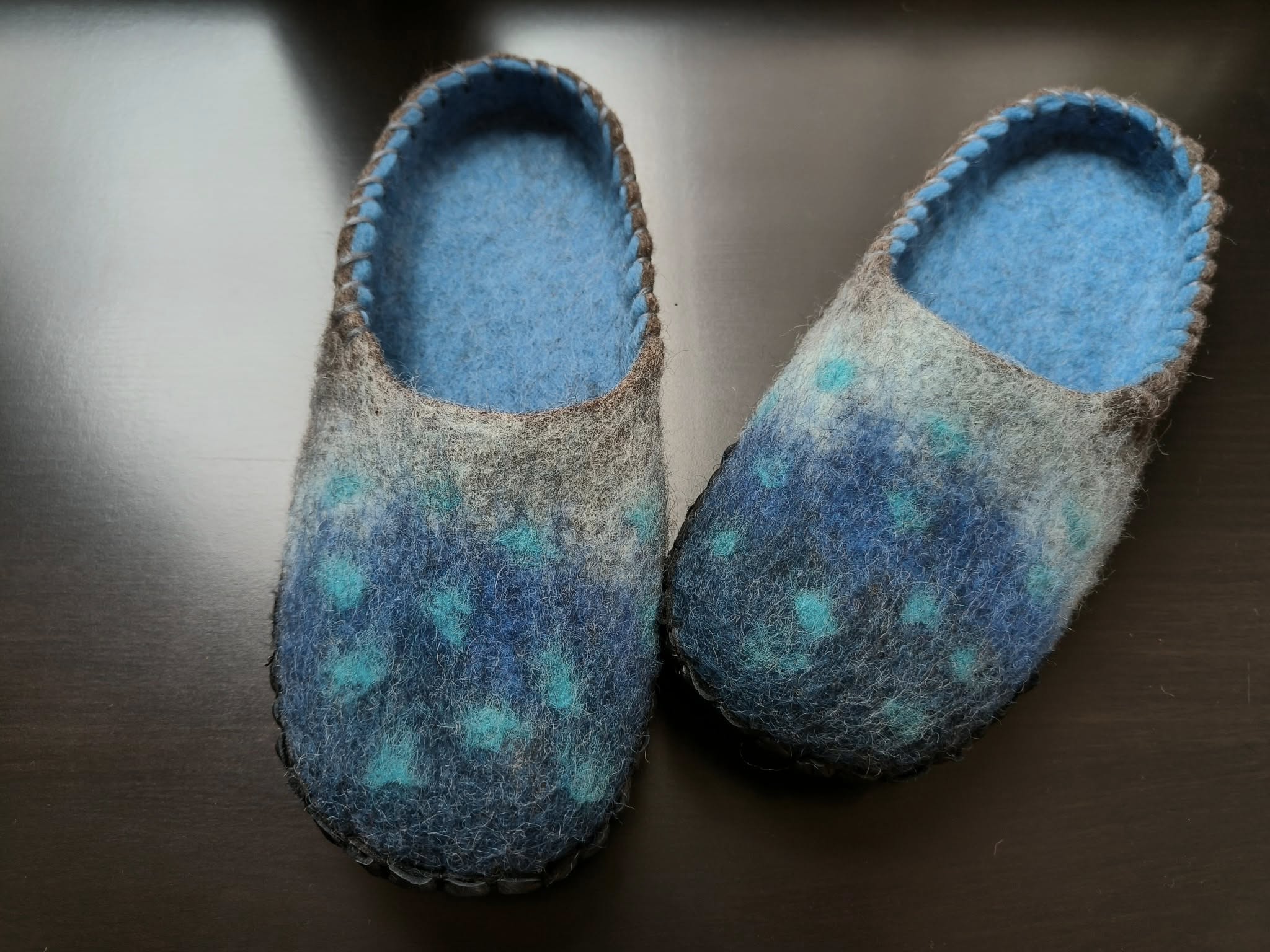 Kauniit 100 % villasta Virossa käsityönä huovutetut tossut.